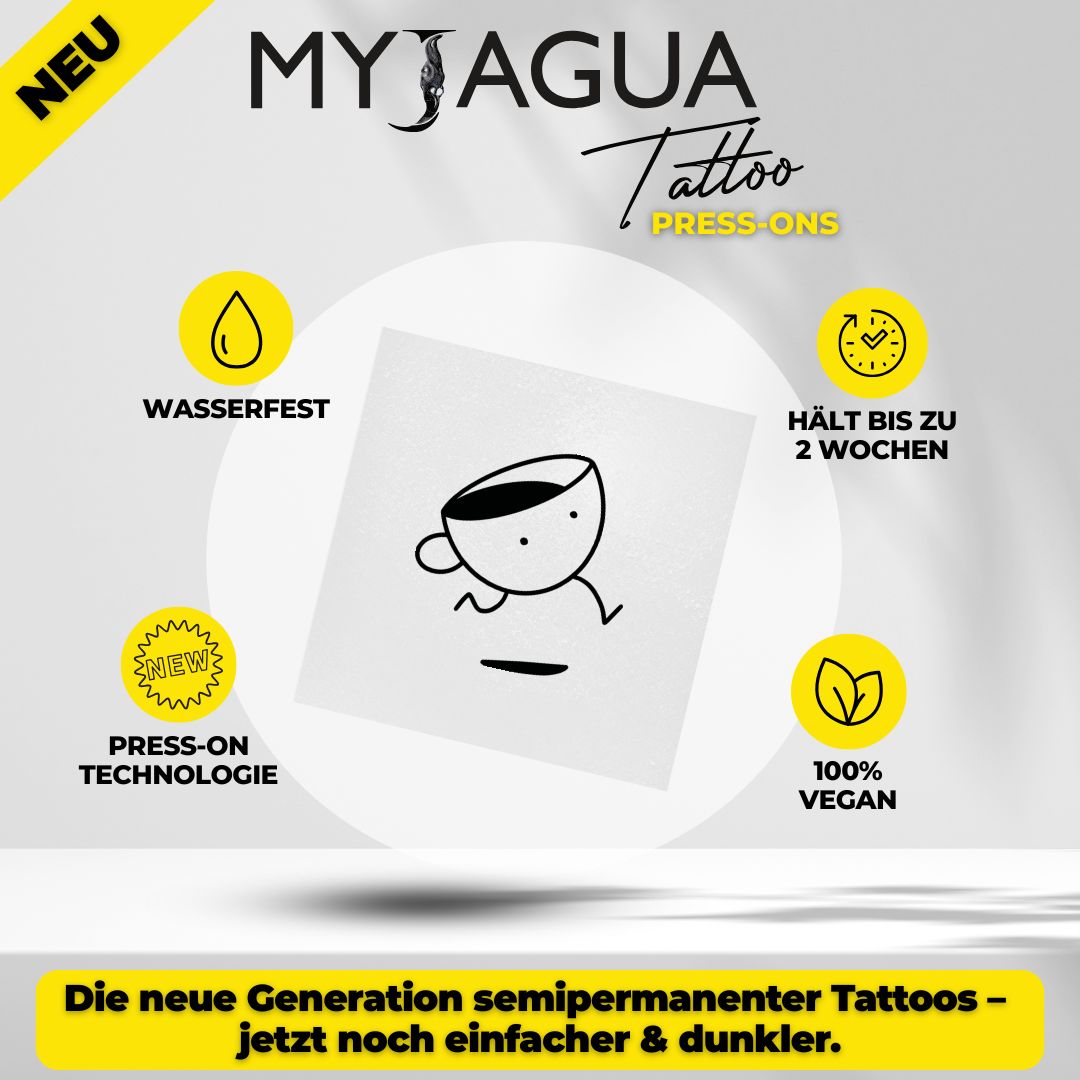 Die MyJagua Tinte zieht in die oberste Hautschicht ein, deshalb ist Wasser Kontakt kein Problem.1-2 WOCHEN HALTBARKEIT