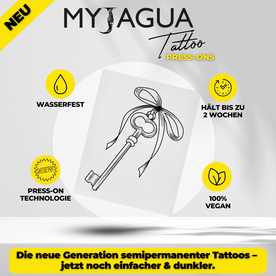 Verschönere deinen Körper mit dem MyJagua-Tattoo, ohne die Schmerzen einer echten Tattoo-Session zu spüren. Unsere semi-permanenten Tattoos halten 1-2 Wochen und bieten dir die Freiheit, Motiv, Größe und Platzierung deines Tattoos flexibel zu gestalten.