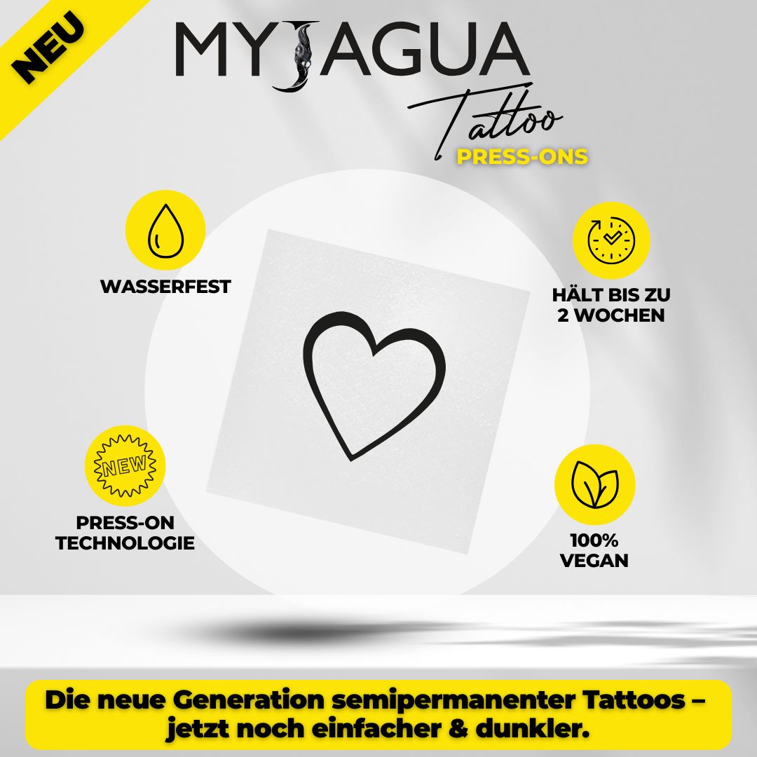 Verschönere deinen Körper mit dem MyJagua-Tattoo, ohne die Schmerzen einer echten Tattoo-Session zu spüren. Unsere semi-permanenten Tattoos halten 1-2 Wochen und bieten dir die Freiheit, Motiv, Größe und Platzierung deines Tattoos flexibel zu gestalten.
