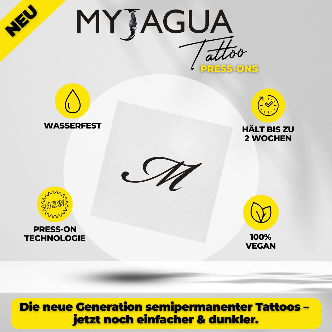 Das Auftragen unseres MyJagua-Tattoos dauert nur 1 Minute. Genieße deinen individuellen Körperschmuck für 1-2 Wochen – ohne Verschmieren oder Abfärben.
