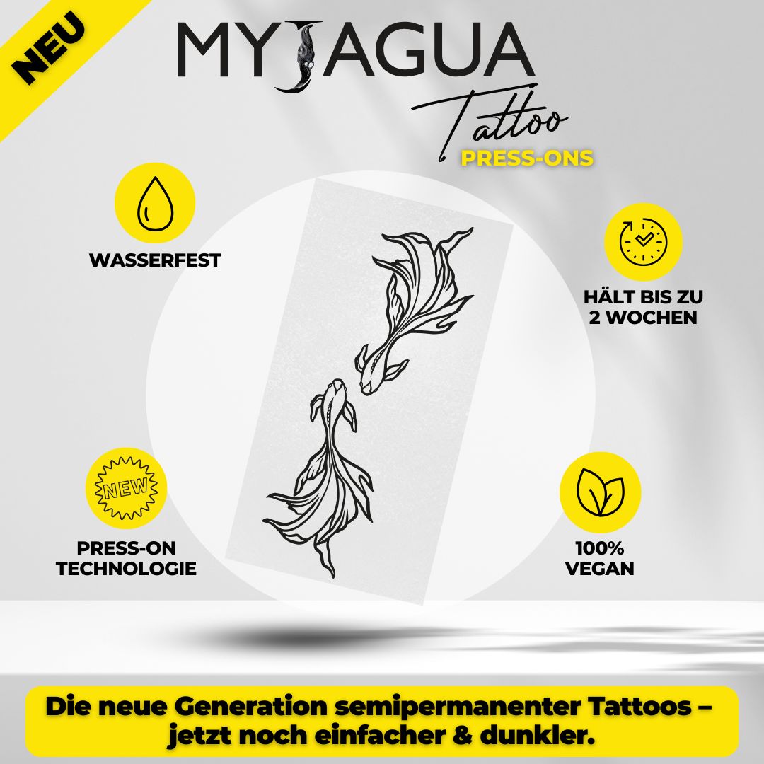 Verschönere deinen Körper mit dem MyJagua-Tattoo, ohne die Schmerzen einer echten Tattoo-Session zu spüren. Unsere semi-permanenten Tattoos halten 1-2 Wochen und bieten dir die Freiheit, Motiv, Größe und Platzierung deines Tattoos flexibel zu gestalten.