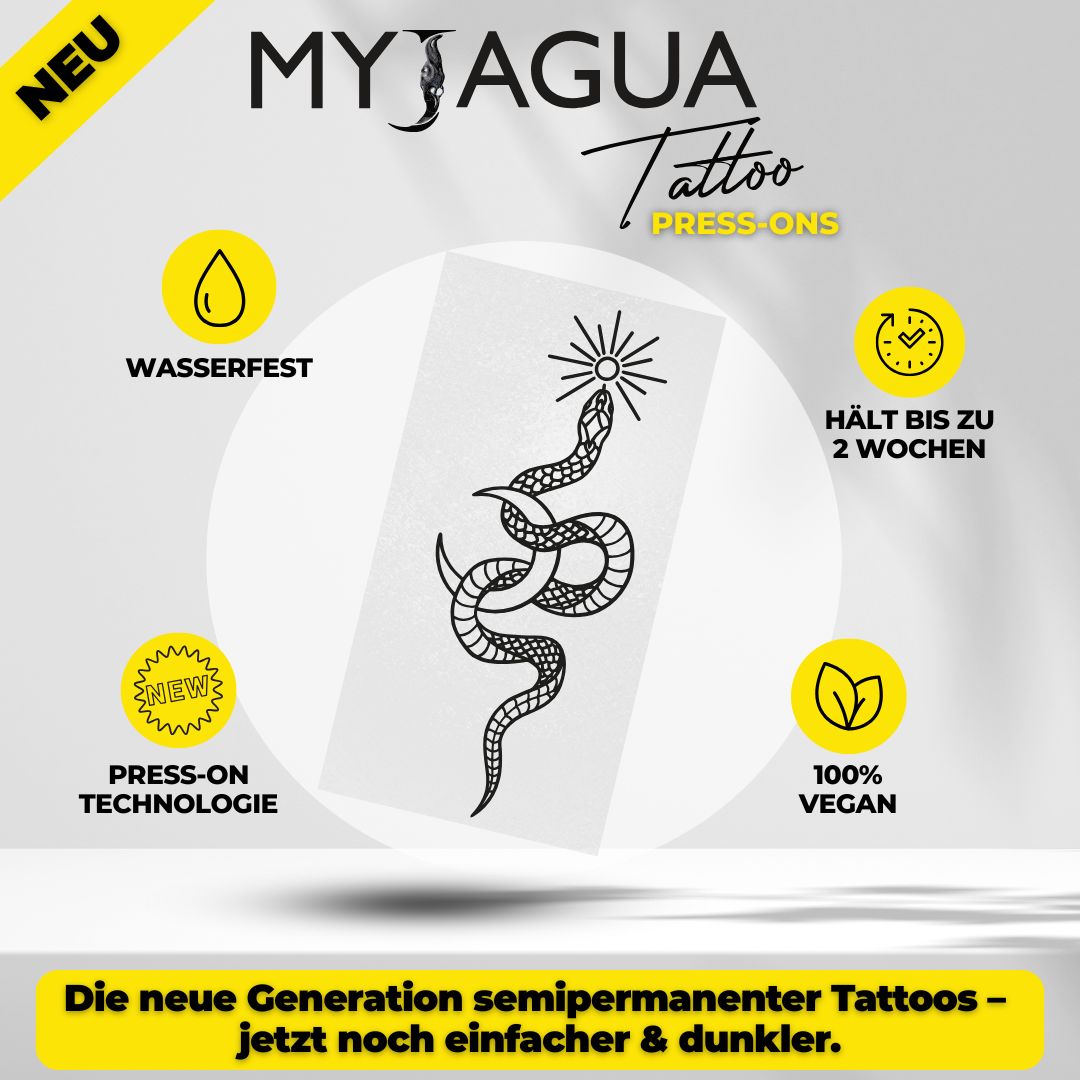 Verschönere deinen Körper mit dem MyJagua-Tattoo, ohne die Schmerzen einer echten Tattoo-Session zu spüren. Unsere semi-permanenten Tattoos halten 1-2 Wochen und bieten dir die Freiheit, Motiv, Größe und Platzierung deines Tattoos flexibel zu gestalten.
