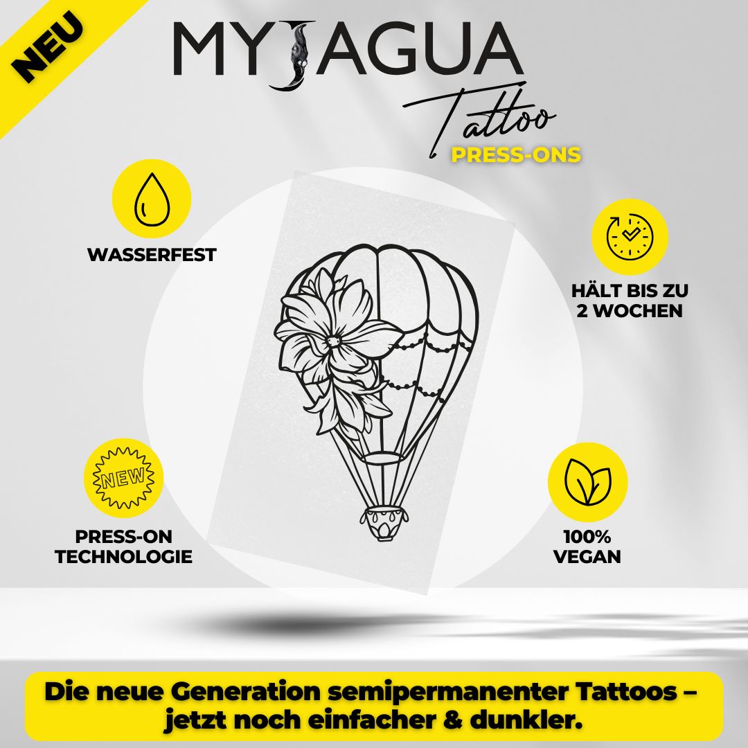 Verschönere deinen Körper mit dem MyJagua-Tattoo, ohne die Schmerzen einer echten Tattoo-Session zu spüren. Unsere semi-permanenten Tattoos halten 1-2 Wochen und bieten dir die Freiheit, Motiv, Größe und Platzierung deines Tattoos flexibel zu gestalten.