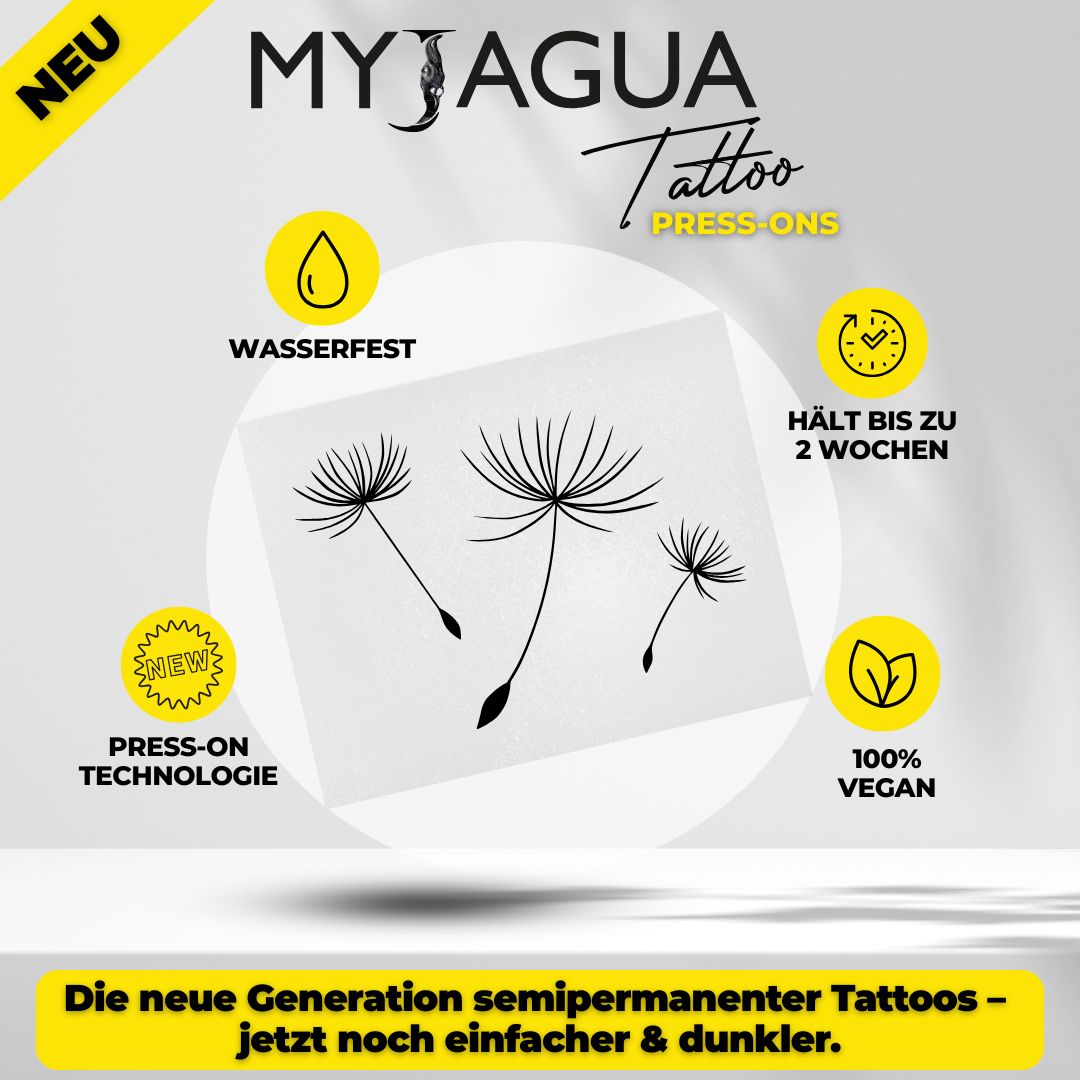 Das Auftragen unseres MyJagua-Tattoos dauert nur 1 Minute. Genieße deinen individuellen Körperschmuck für 1-2 Wochen – ohne Verschmieren oder Abfärben.