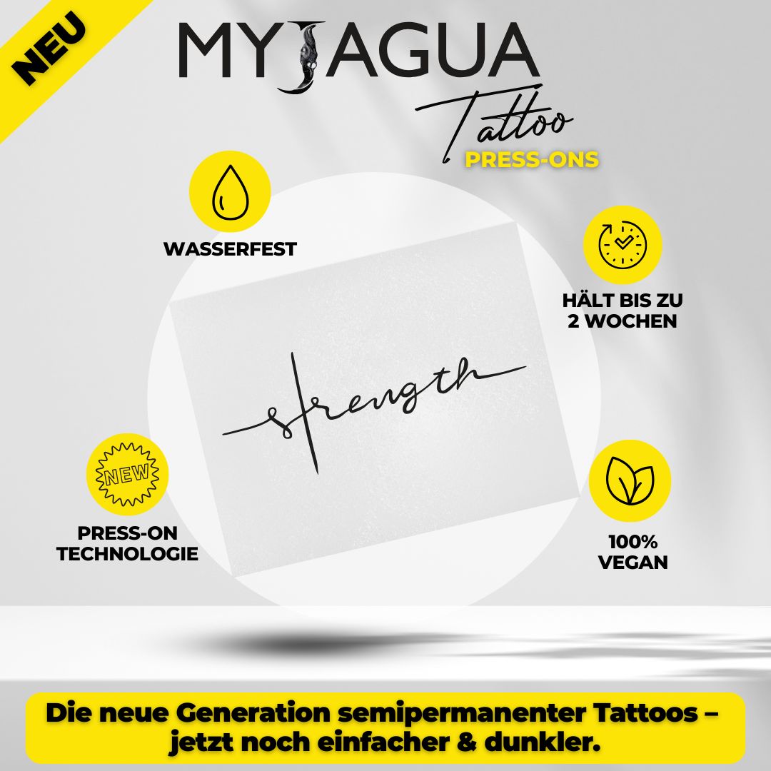 Das Auftragen unseres MyJagua-Tattoos dauert nur 1 Minute. Genieße deinen individuellen Körperschmuck für 1-2 Wochen – ohne Verschmieren oder Abfärben.