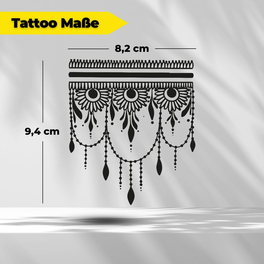 Erlebe ein authentisches Jagua-Tattoo in Blauschwarz, das 1-2 Wochen hält und den Look eines echten Tattoos bietet.