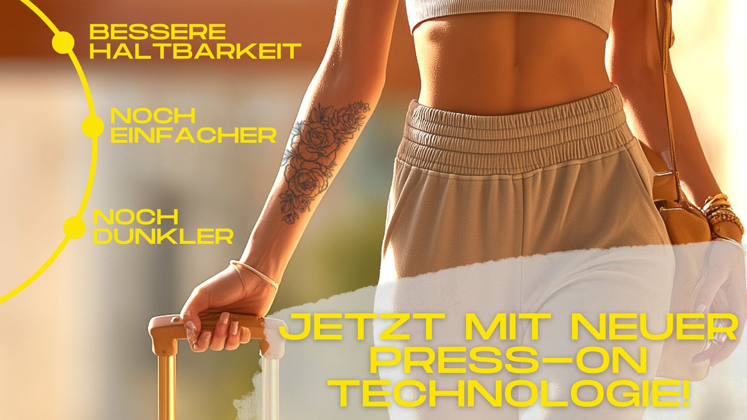 Das Auftragen unseres MyJagua-Tattoos dauert nur 1 Minute. Genieße deinen individuellen Körperschmuck für 1-2 Wochen – ohne Verschmieren oder Abfärben.
