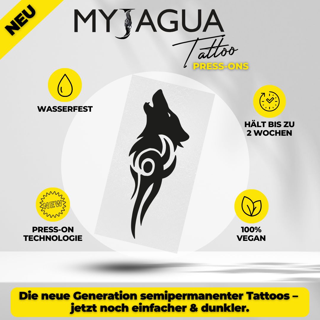 Verschönere deinen Körper mit dem MyJagua-Tattoo, ohne die Schmerzen einer echten Tattoo-Session zu spüren. Unsere semi-permanenten Tattoos halten 1-2 Wochen und bieten dir die Freiheit, Motiv, Größe und Platzierung deines Tattoos flexibel zu gestalten.